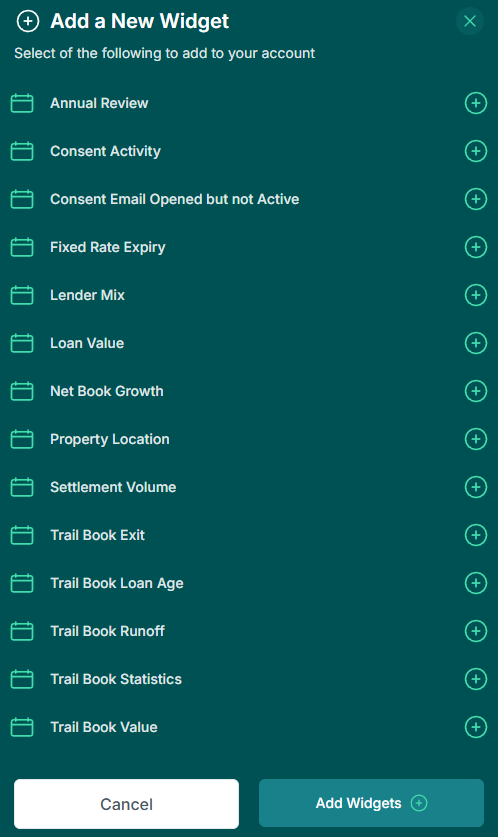 Select the widget(s) you want to add, then click 'Add Widgets' and you're all done!